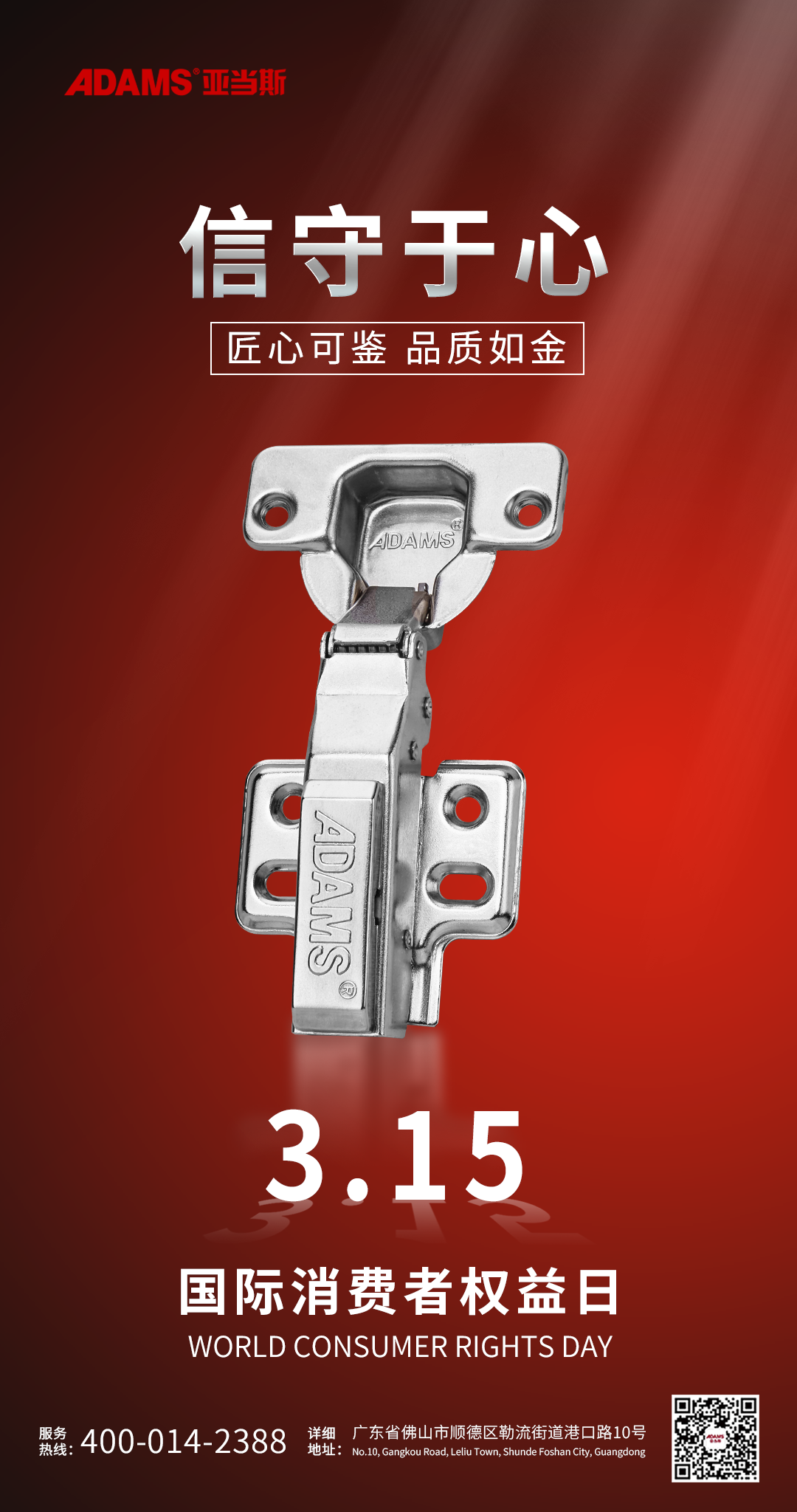 一年一度的315消費者權益日來臨,也是驗證一個企業產品品質、服務質量的重要日子。亞當斯是一家從事基礎五金產品科研開發、生產、銷售一體的高新技術企業。我們始終堅持以質量為核心,以科技為驅動,為消費者提供高品質的產品和服務。