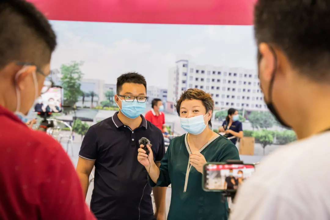 ▲銷售人員接受中國五金制品協會家具五金專委會秘書長采訪