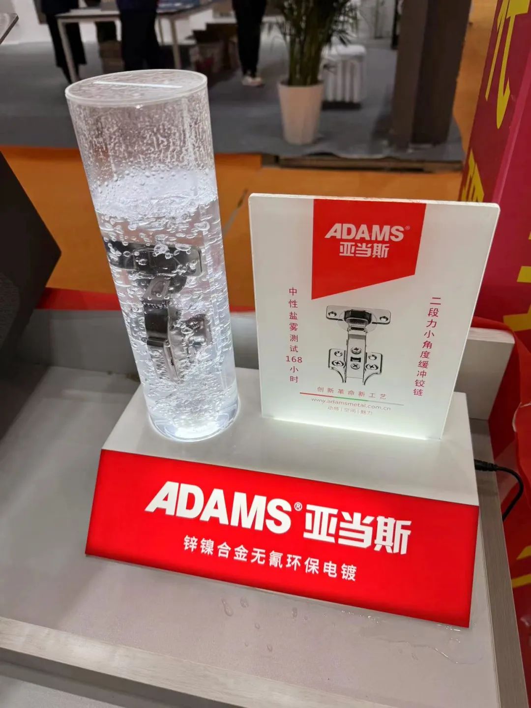 亞當(dāng)斯展位整體設(shè)計(jì)風(fēng)格簡約大氣,將熱銷產(chǎn)品完美展示出來,用最直接的方式從視覺上傳遞了亞當(dāng)斯致力提供高質(zhì)高效的五金產(chǎn)品,旨在釋放繁瑣,帶來專業(yè)的全屋定制五金的解決方案。