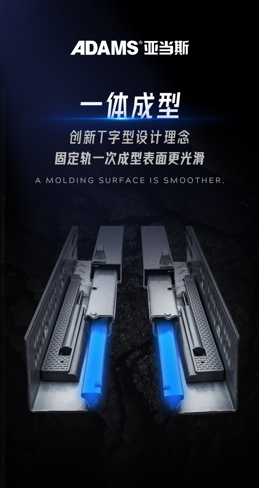 滑軌采用創新T字型設計結構,滾面擠壓成型,軌道抗變形能力強,防下沉,滾球的多維度導向性能,使滑軌運動平穩,順暢且降低噪音。