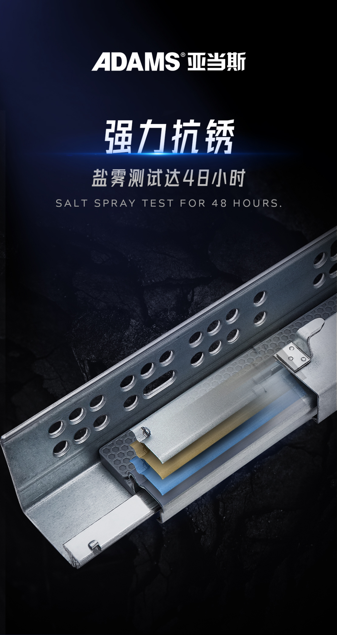 滑軌經歷48小時鹽霧測試,耐腐蝕性強,表面不易劃傷。