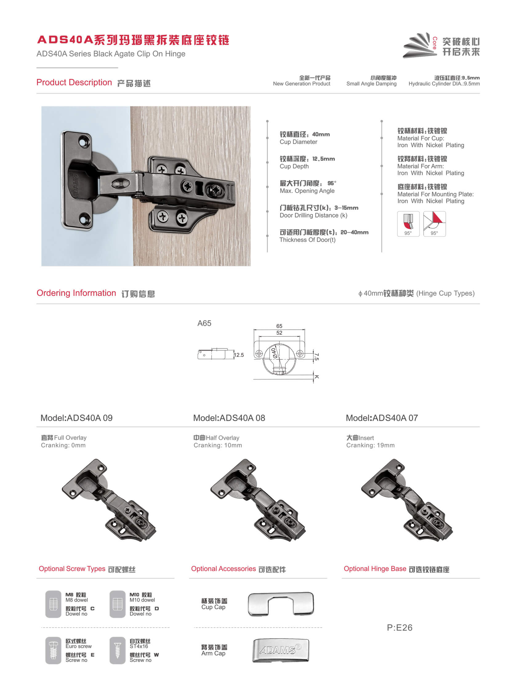 ADS40A系列瑪瑙黑拆裝底座鉸鏈