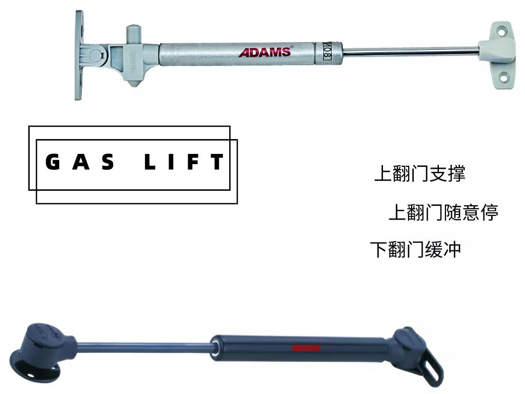 Optional functions of Adams pneumatic support rod: support for the upturn door, stop for the upturn door at will, and buffer for the downturn door. Consumers can choose according to the cabinet design and actual needs.